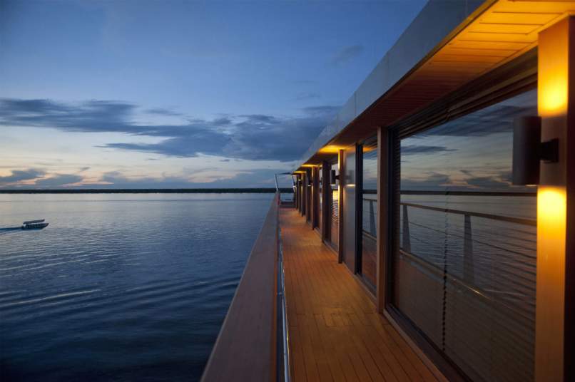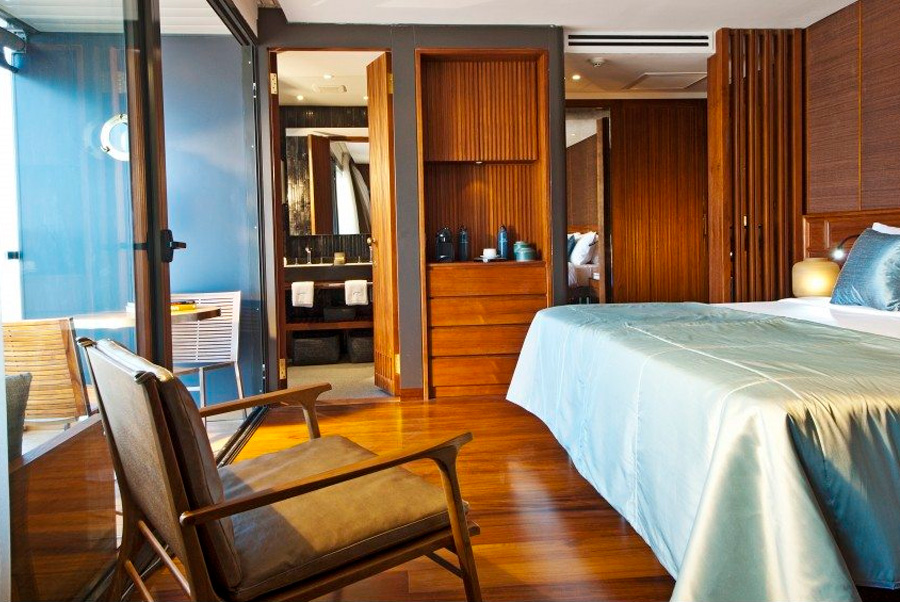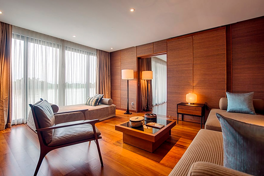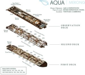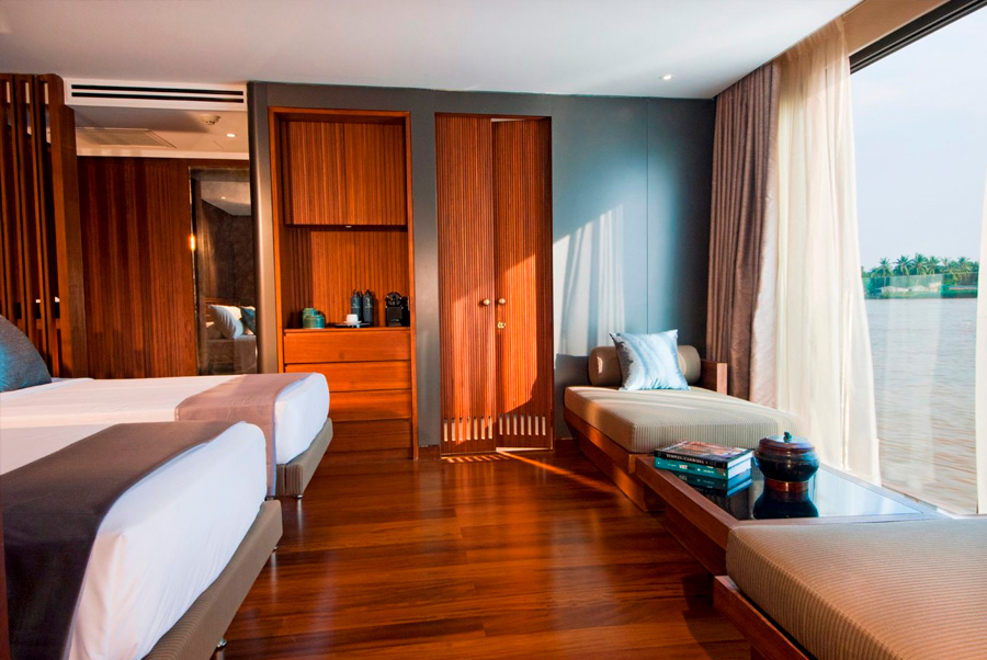 Una magnífica presencia en el río Mekong, Aqua Mekong presenta una arquitectura moderna y un interior diseñado por el renombrado arquitecto Noor Design. Las 20 espaciosas suites con aire acondicionado del crucero cuentan con ventanas panorámicas que ofrecen vistas espectaculares del paisaje fluvial en constante cambio. Aqua Mekong también recibió el codiciado Gold Award en la categoría Arquitectura / Nueva construcción en los 2015 Asia Hotel Design Awards.