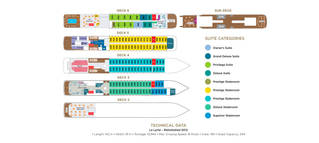 El cuarto barco de la flota, fiel al espíritu de Ponant, Le Lyrial, encarna la sutil alianza entre lujo, intimidad y bienestar, que es la firma de Ponant. La elegancia de sus espacios externos e internos y su tamaño íntimo, con solo 122 camarotes, hacen de este un yate raro e innovador en el mercado de cruceros.