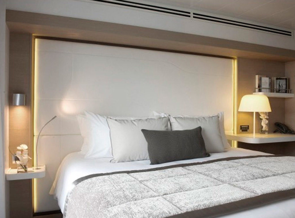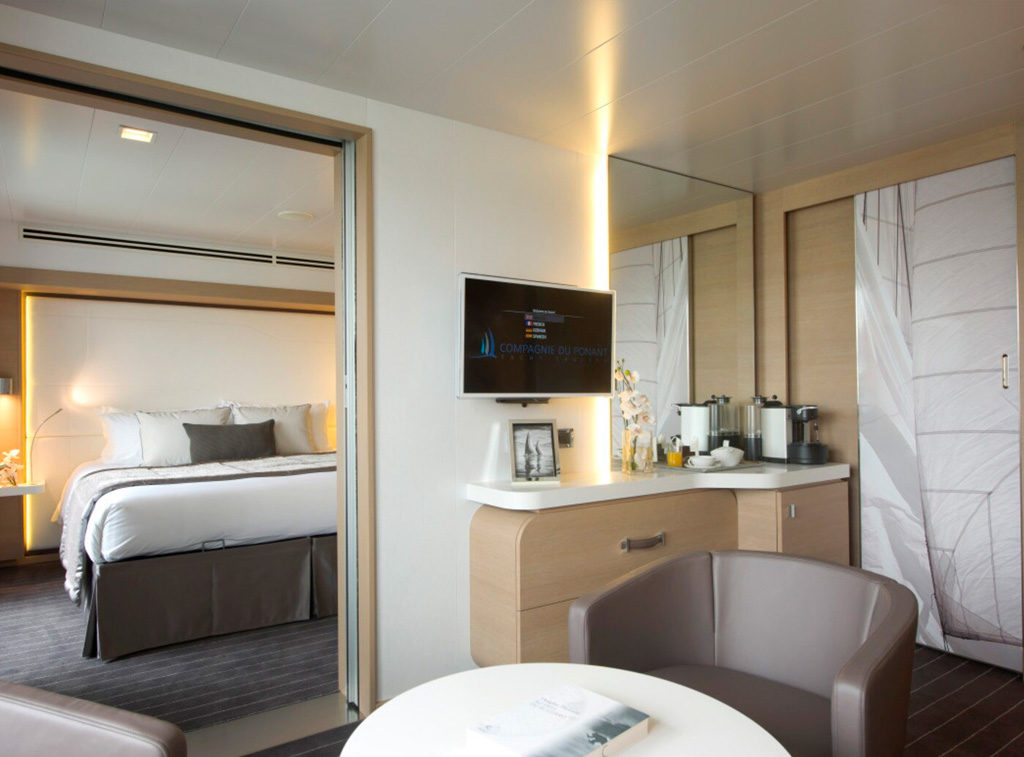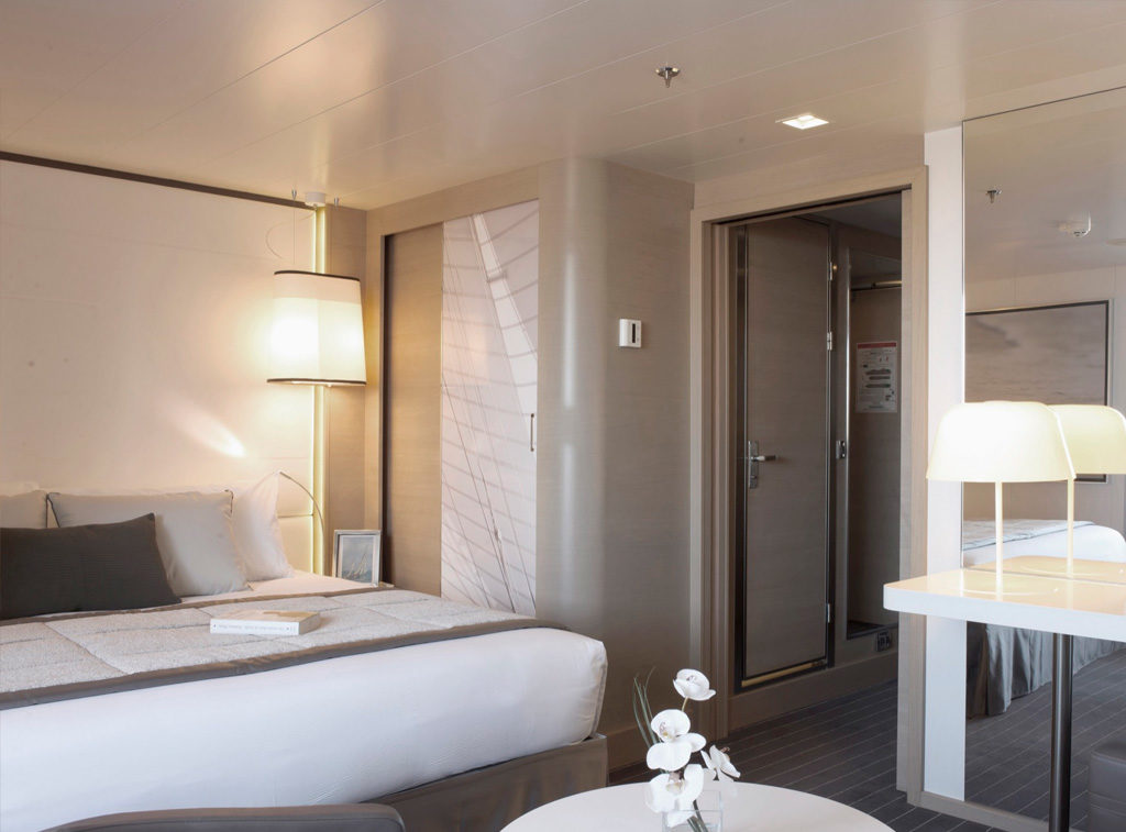 Diseñado en 2013, Le Soléal encarna la sutil alianza entre lujo, intimidad y bienestar, que es la firma de Ponant.La elegancia de sus espacios interiores y exteriores y su tamaño íntimo, con solo 132 cabinas, hacen de este un yate poco común. innovador en el mercado de cruceros.