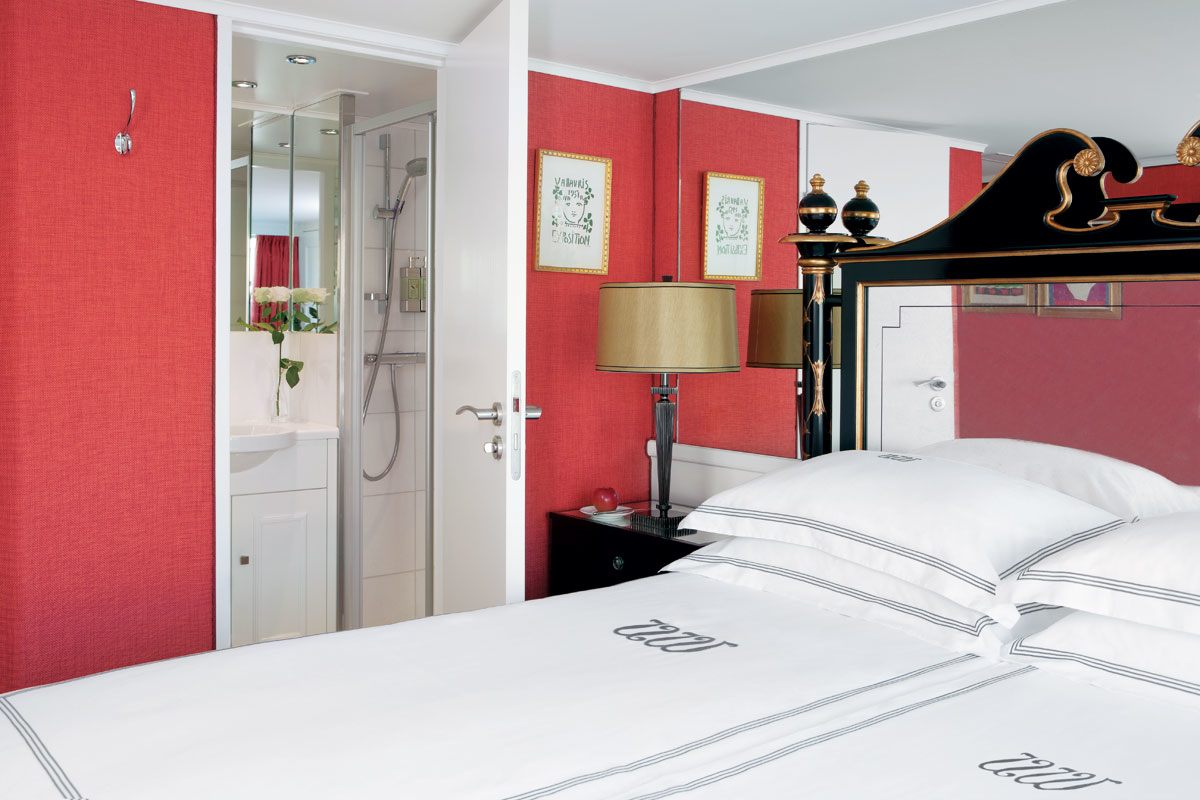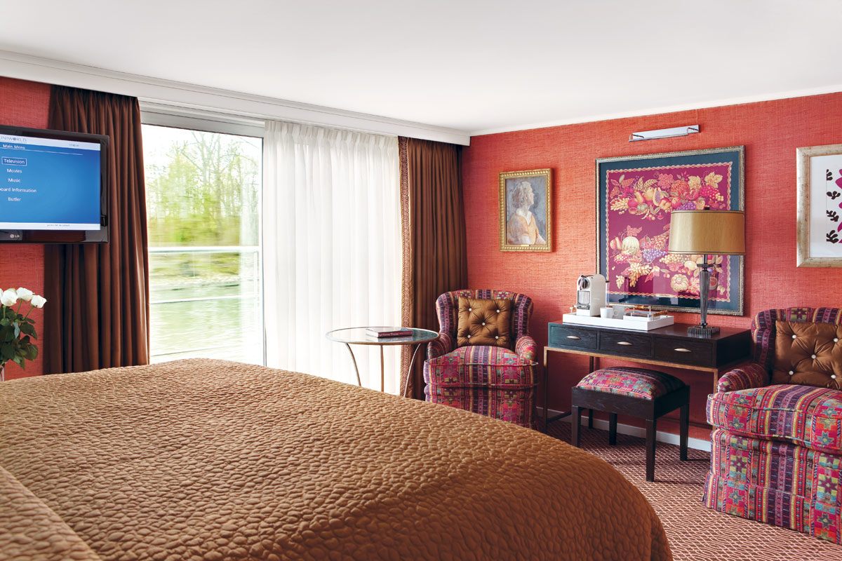 El impresionante lobby del River Princess, con 128 pasajeros, establece un tono indulgente y lujoso para su viaje por Europa. Al otro lado del barco, verdes con joyas, marrones cálidos y una mezcla de blanco y negro crean una atmósfera sofisticada, mientras que las elegantes áreas públicas, que incluyen un salón principal, un salón Sky y un salón y biblioteca del capitán, ofrecen asientos cómodos. Para acurrucarse con un buen libro, charlar con amigos o tomar su cóctel favorito.