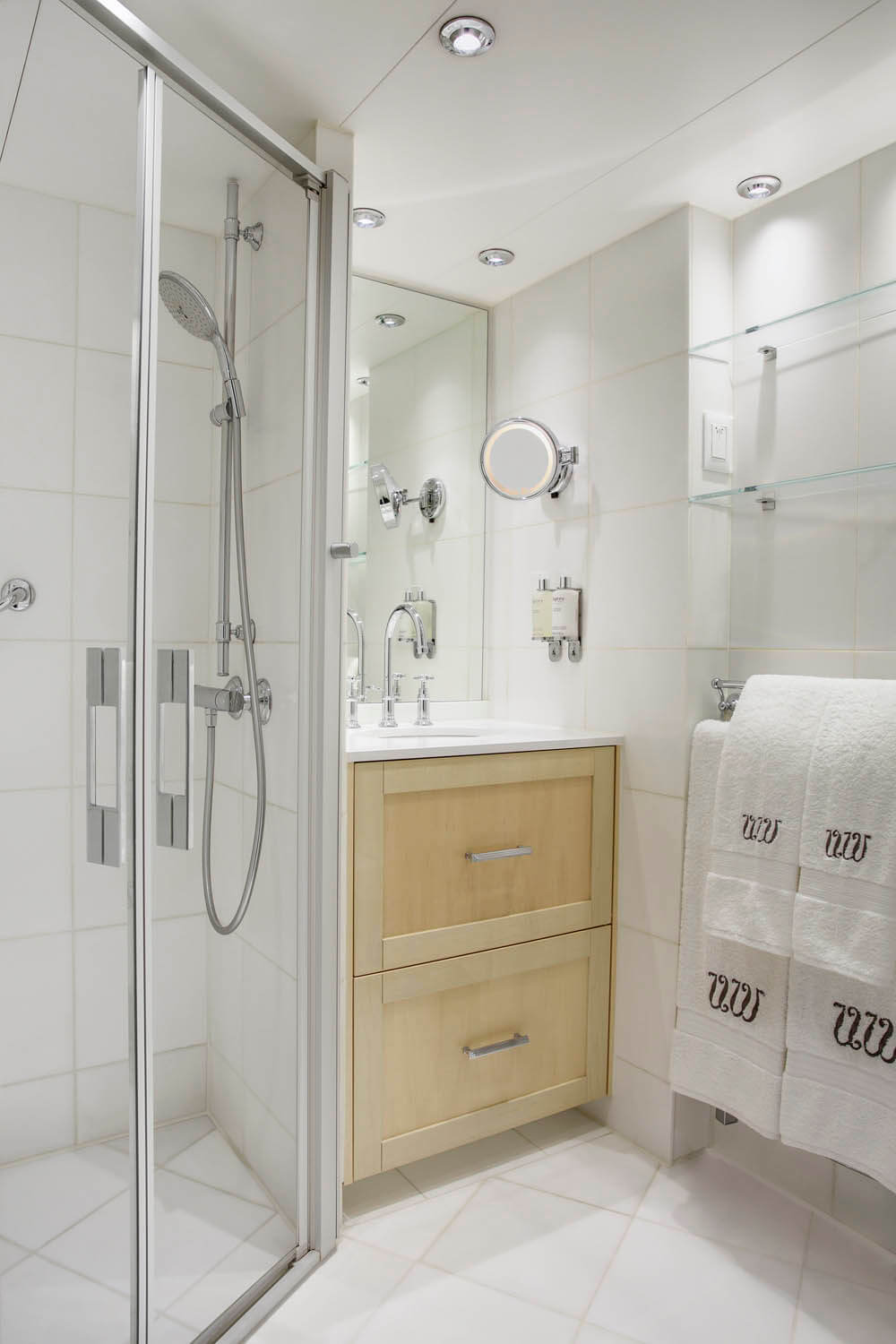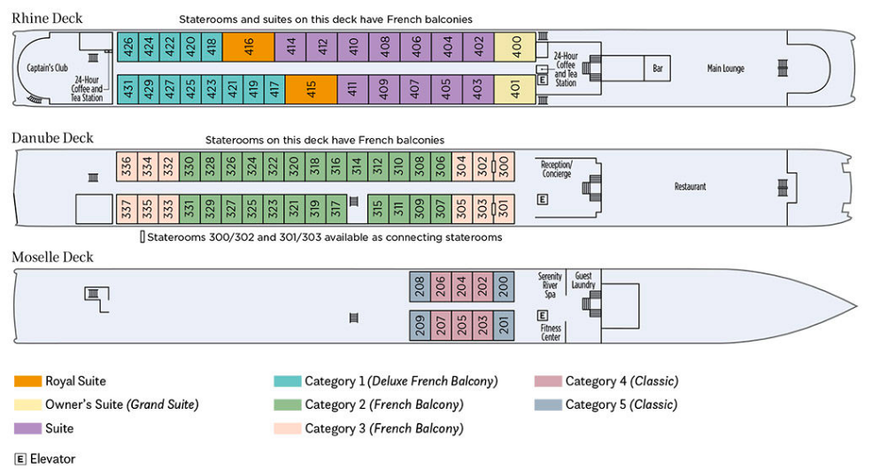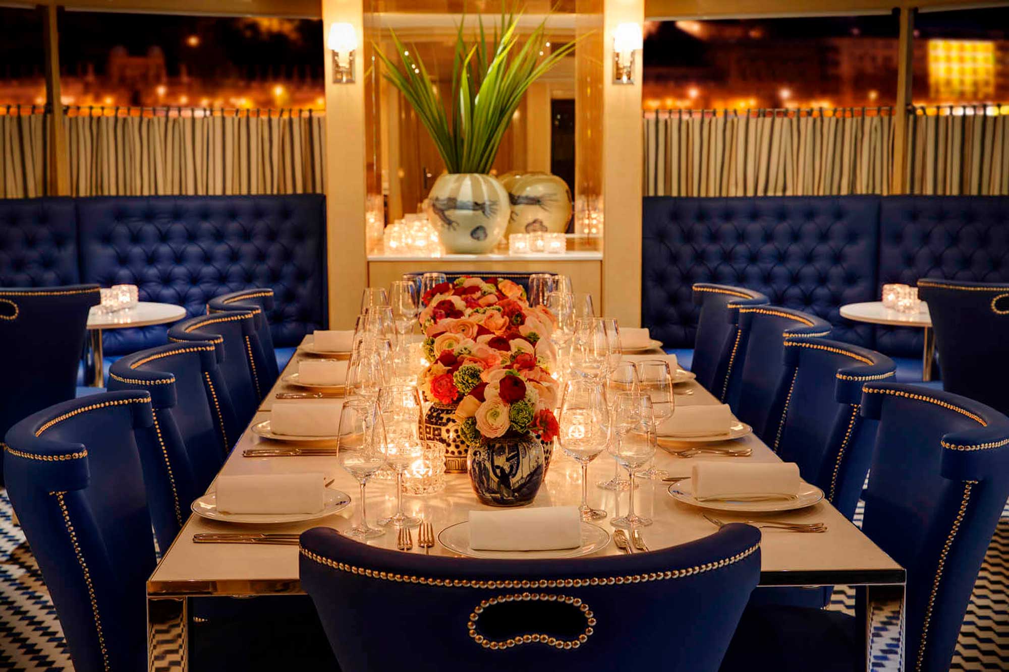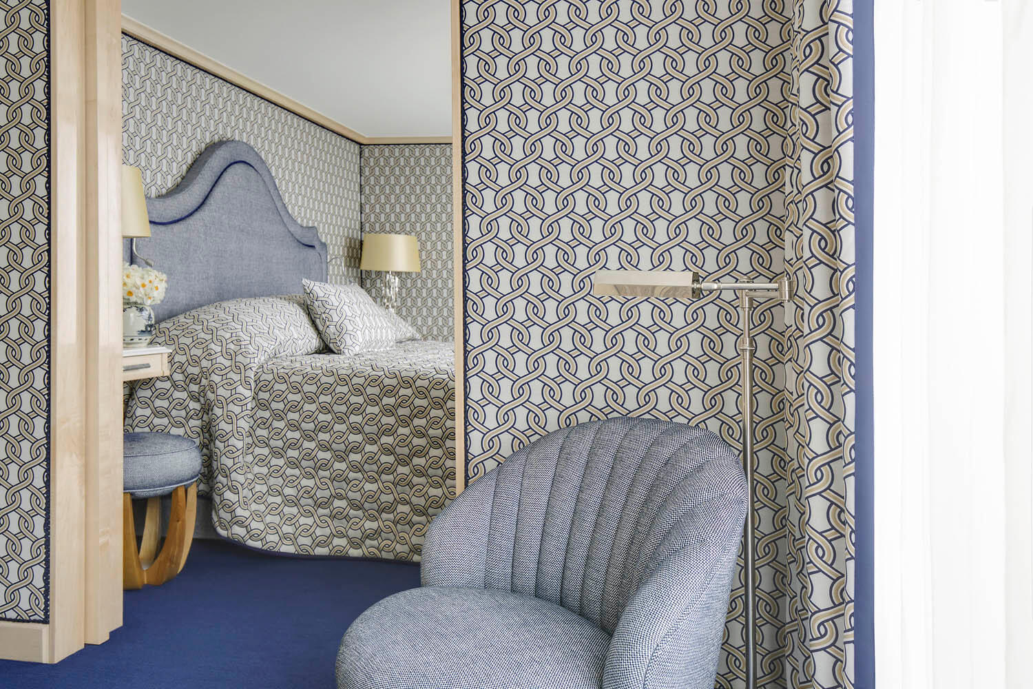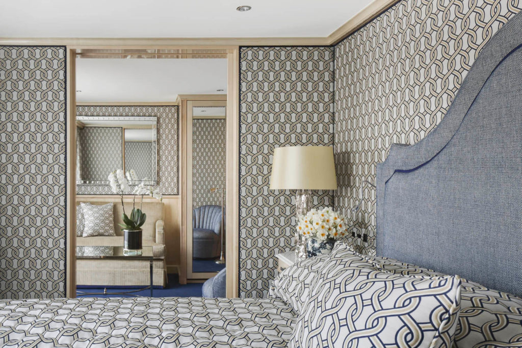 SS Beatrice cuenta con su estilo de yate con madera clara y acabados en azul y blanco, un lobby renovado con elegantes espejos, pisos de mármol, candelabro de Murano blanco con tonos de azul y una gran escalera hecha de níquel y hierro negro. un elemento de diseño único Super barcos de Uniworld. El salón rediseñado del barco cuenta con sofás y sillas con tapicería hecha a mano, pisos de parquet y paneles de techo tapizados, persianas solares y puertos USB, lo que permite a los huéspedes cargar sus teléfonos celulares dondequiera que estén. La obra de arte en todo el barco incluye piezas de Pablo Picasso, Alexander Calder y Pino Signoretto.