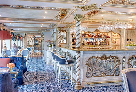 “Royal en su opulenta decoración del siglo XVIII, un tributo a la ex emperatriz austriaca … Además de comidas indulgentes y un ambiente elegante, este es uno de los barcos más bellos del mundo”. – Editores de Cruise Critic