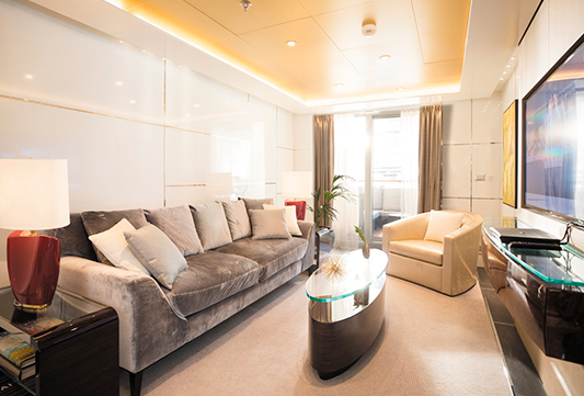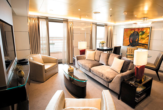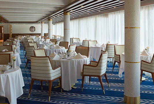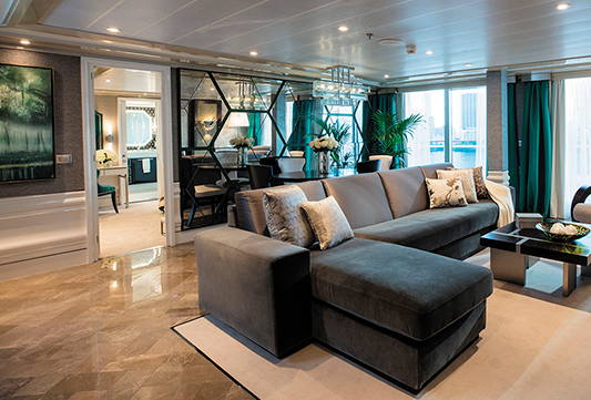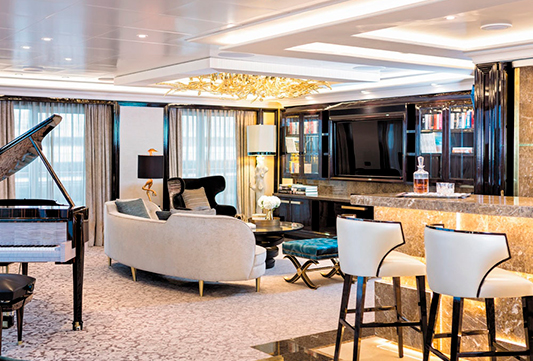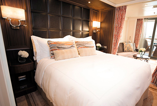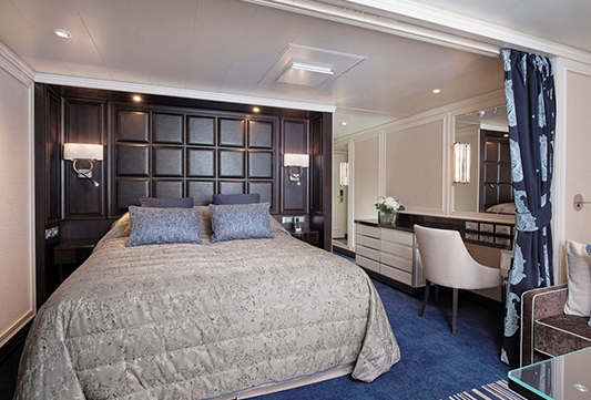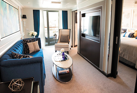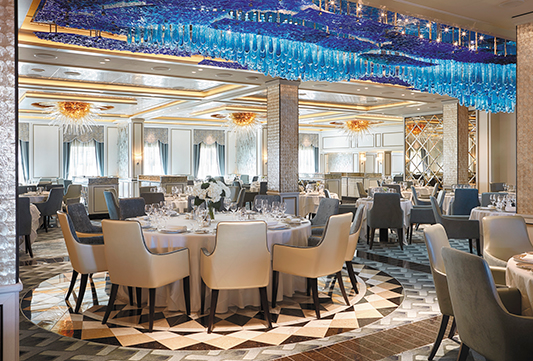 El Seven Seas Explorer® es impresionante, decorado con pinturas de Pablo Picasso y una instalación de techo de vidrio azul cobalto en el elegante restaurante Compass Rose. Todas las suites ofrecen amplios armarios, acabados de alta calidad, relajantes camas Elite Slumber™ y balcones privados. Los tamaños van desde 28,5 hasta 413 m².